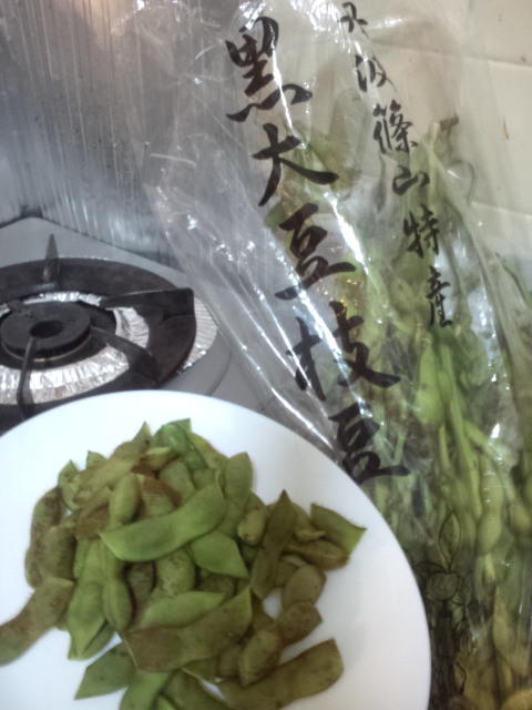 丹波篠山の黒大豆枝豆をいただいたので、それを茹でてみた